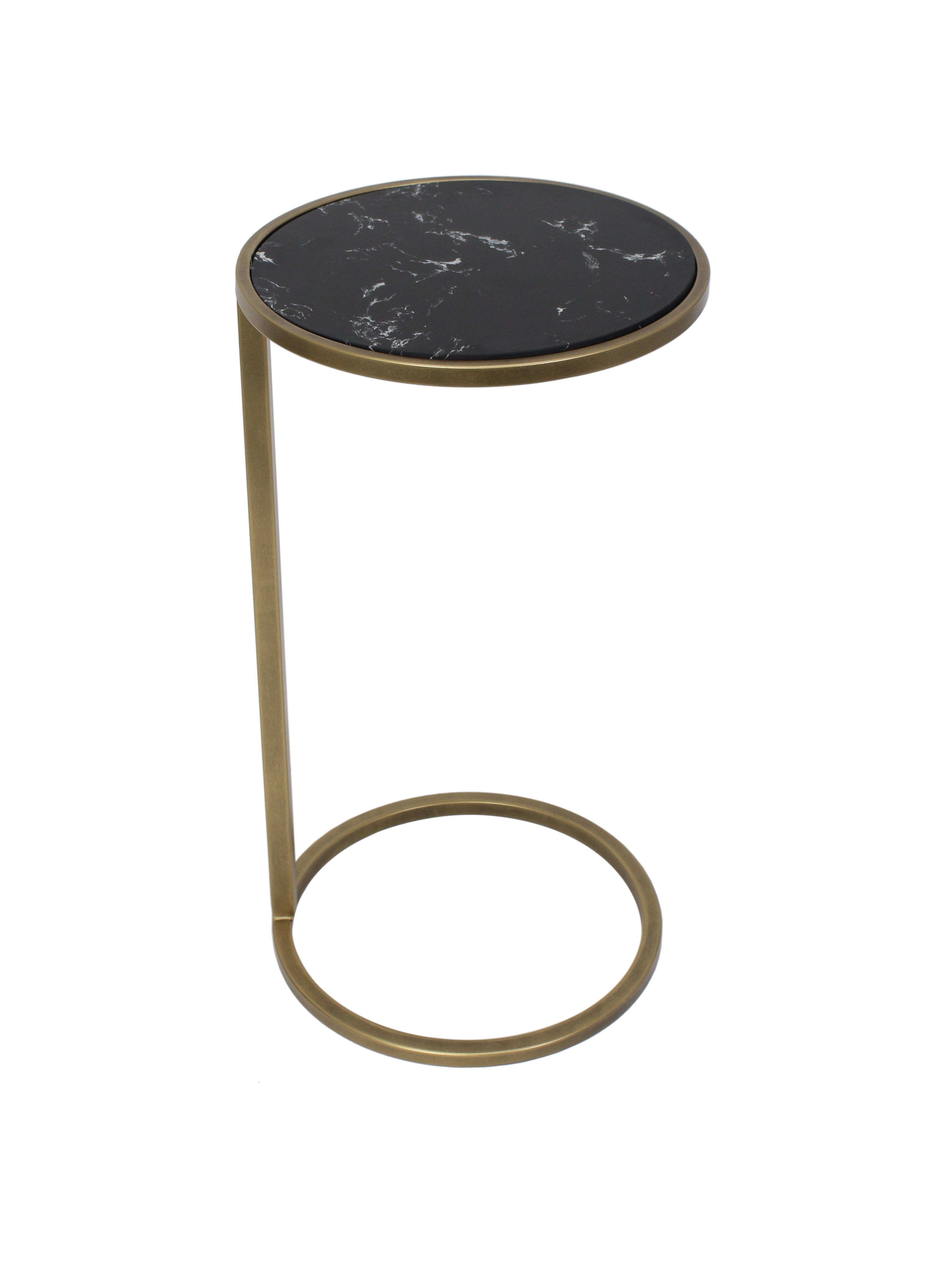 The Oscar Table in black is a striking accent piece that brings depth and contrast to an interior. The dark stone inspired tabletop creates a sense of drama while the warm metallic frame softens the look and adds a touch of luxury.