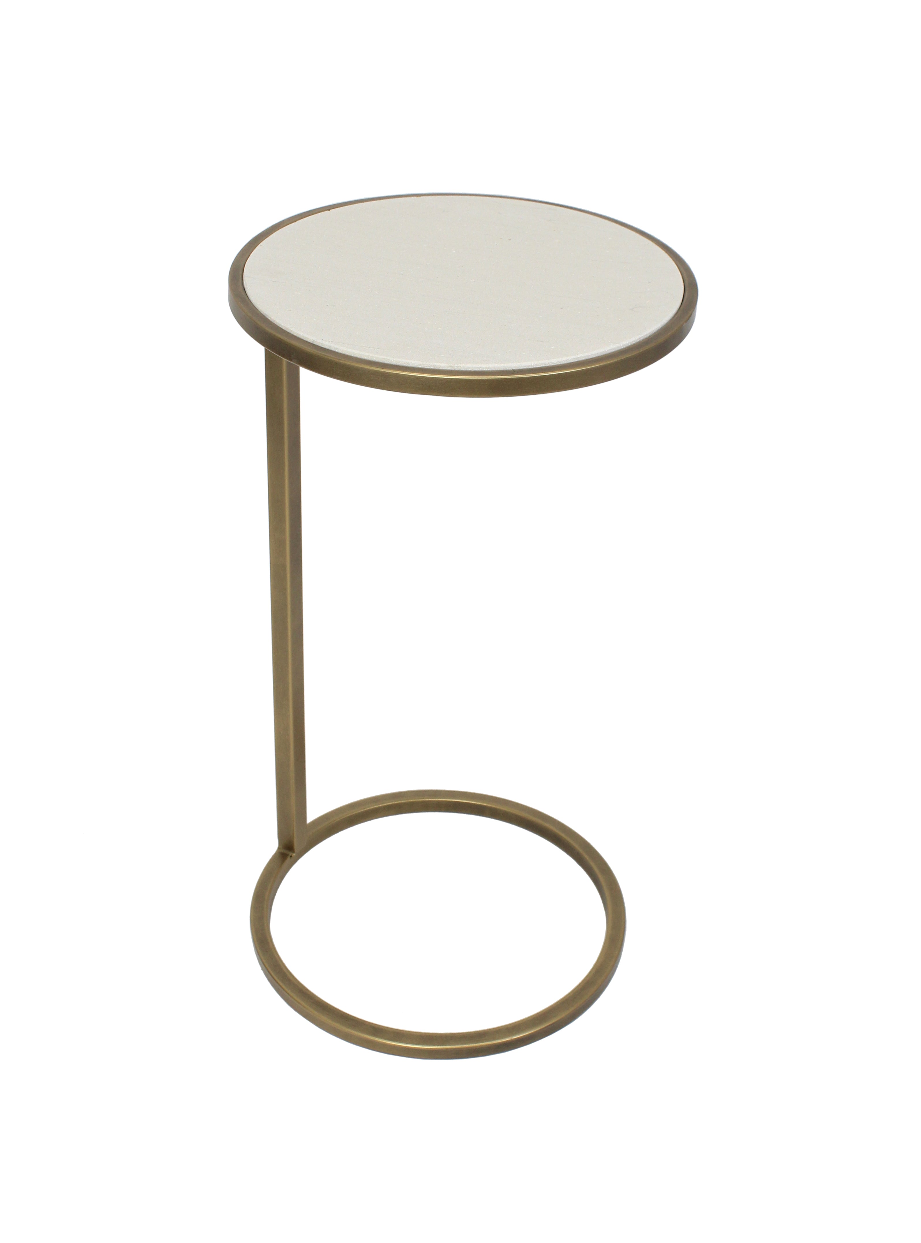 The Oscar Table in white offers a light and contemporary feel with its clean tabletop and refined metal frame. The soft pale surface reflects light gently and adds an airy quality to the space while the circular base provides stability and visual harmony.