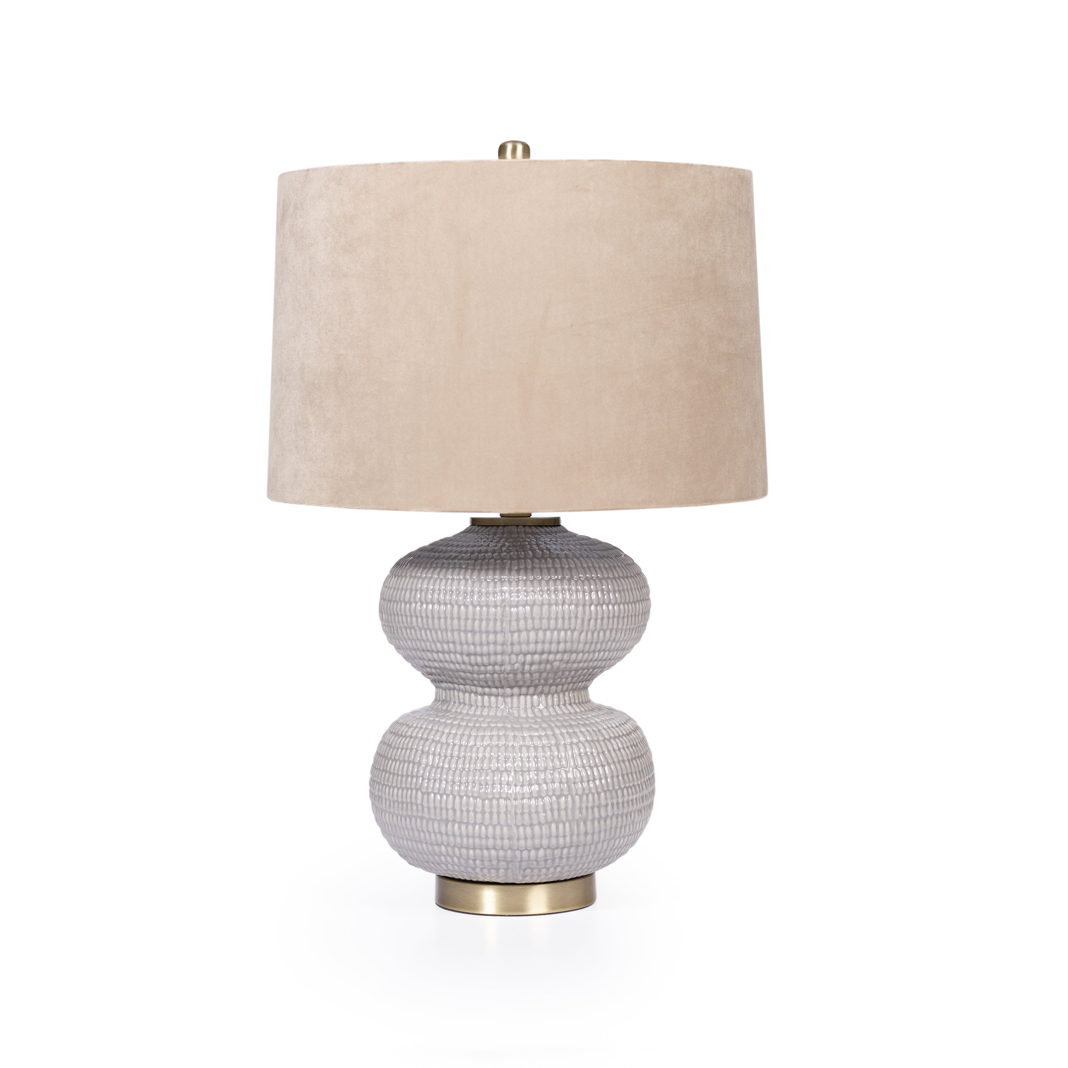The Lara Lamp features a beautifully sculpted ceramic base defined by soft ridges and a rounded silhouette that creates a sense of tactile sophistication. The gentle neutral tone of the base allows the lamp to blend seamlessly into many interior styles while its textured surface adds depth and interest. This is a piece that feels calm grounded and effortlessly refined.