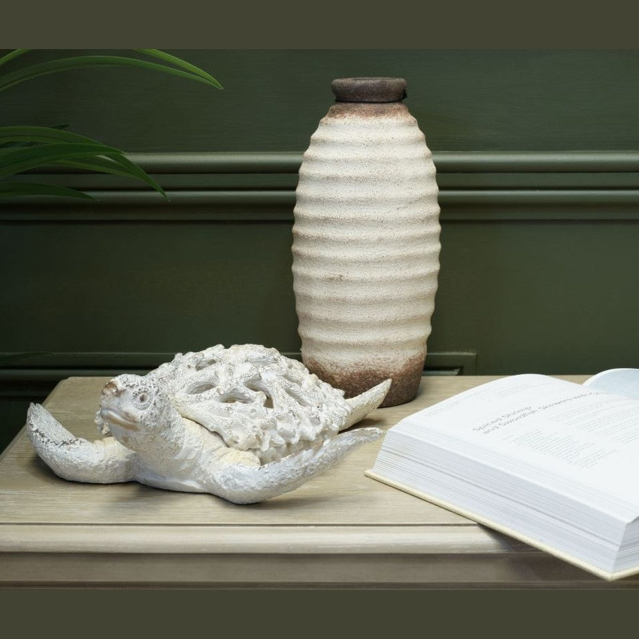 Displayed on a console table bookshelf or coffee table the Sea Turtle adds a quiet moment of charm and personality. It invites a sense of tranquillity into the space and pairs beautifully with both contemporary and traditional interiors. The sculptural form draws the eye without overwhelming the room making it an ideal accent for curated styling.