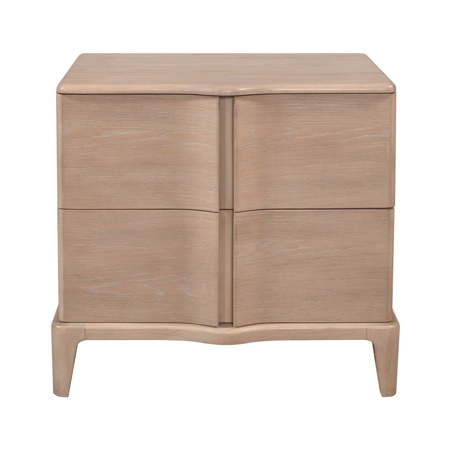 Compact yet striking, this two-drawer side table is perfect for those seeking a mix of functionality and design. Its natural wood finish highlights the beauty of its fine grain, while the smooth curves on the front add a touch of elegance. The spacious drawers provide plenty of room for storage, making it ideal for bedrooms, living rooms, or small spaces that need organized storage. Supported by sturdy, subtly tapered legs, this chest balances durability with timeless style.