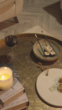 Supported by a slender, gracefully arched base, this table strikes the perfect balance between artistry and functionality. Whether styled with sculptural objects or used to anchor your favourite seating arrangement, it brings a warm metallic glow and a sense of quiet luxury to any interior.