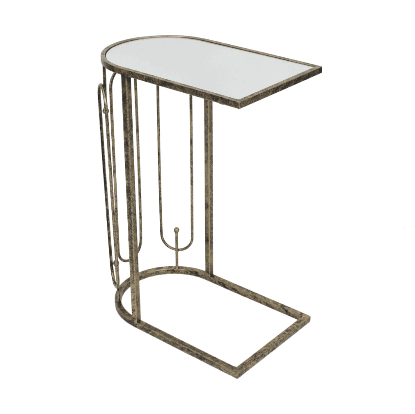 - Oblong detailing on the outer surround and finished with a mirrored top and distressed antique gold